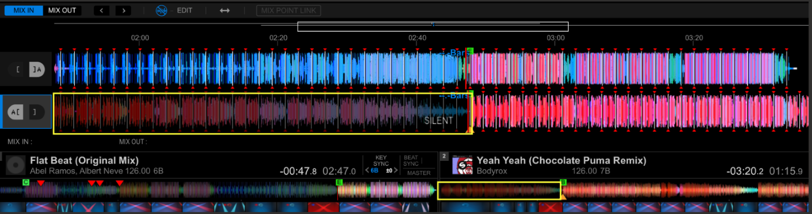 Now the two tracks are ready to play in MIX POINT LINK.